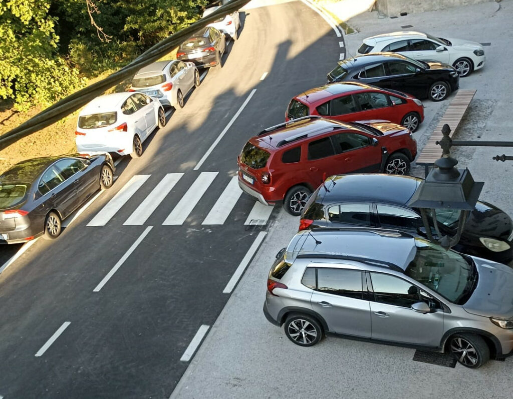 E i risultati sono eclatanti: la risistemazione del borgo, fatta all’interno di un progetto che punta a sviluppare il turismo… ha bellamente ignorato il fattore “parcheggi per i turisti”. Le conseguenze sono quelle che si vedono qui di seguito.